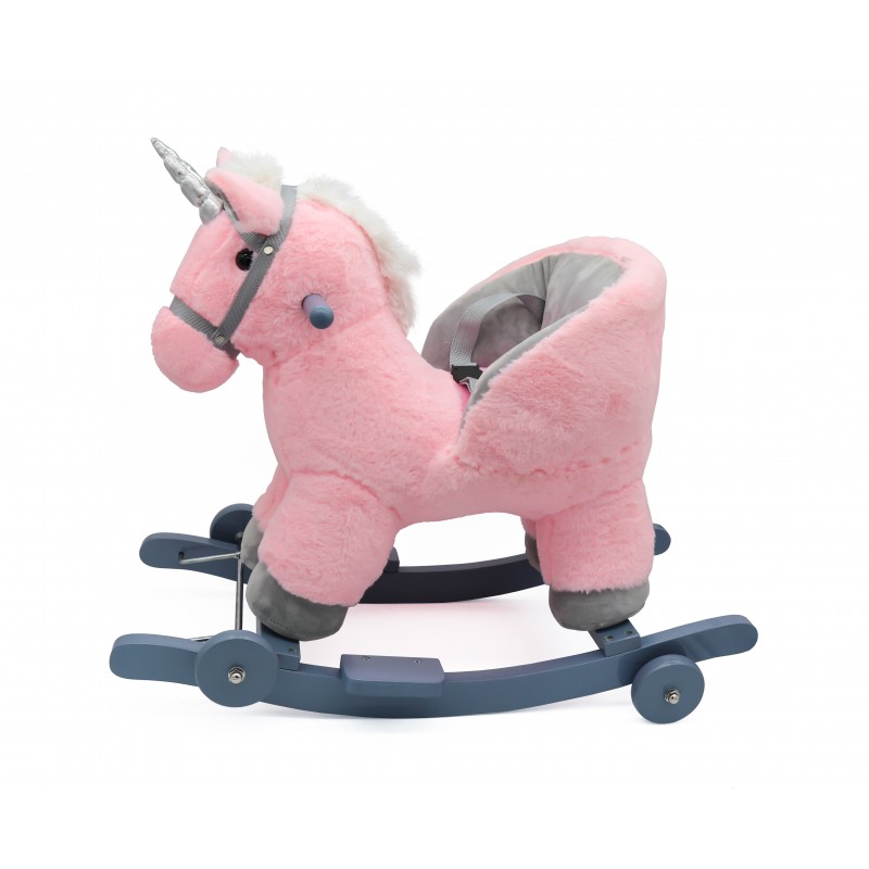 Un caballito balancín muy suave y seguro con su cinturón de seguridad. Es muy gracioso y además tiene sonidos, queda muy bonito en la habitación de mi bebe.