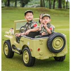 El coche eléctrico para niños y niñas ATAA Commander con 3 asientos, y muchos extras y funciones increíbles, es un coche XXL con un estilo militar en el que los niños jugarán sin parar. Este coche para niños todoterreno está disponible en diferentes tonos de verde y es muy completo.