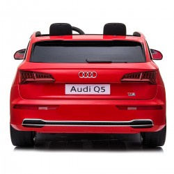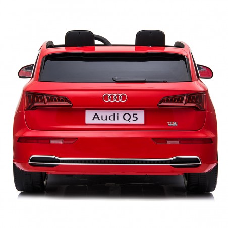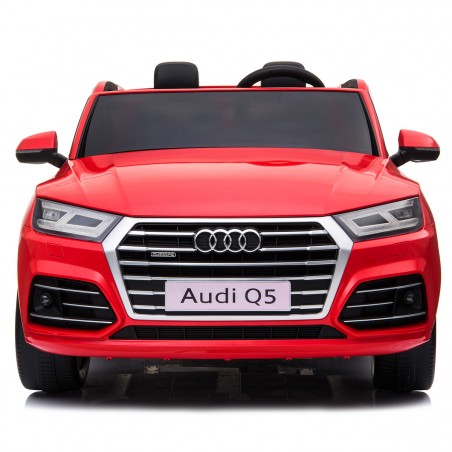 Coche eléctrico para niños Audi Q5 24v de dos plazas con MP4 El coche eléctrico infantil Audi Q5 24v   es un coche XXL de 2 asientos, apto para dos niños pequeños o para un niño más grande de hasta 8 años. Cuenta con extras de lujo, como: asientos en polipiel, ruedas de goma EVA, los emblemas de la marca Audi o la suspensión de muelles a las 4 ruedas. El Audi Q5 biplaza  es un vehículo de estilo todo camino en el que los niños pasarán horas jugando. Además, este coche infantil eléctrico incluye una pantalla MP4 en la que los pequeños podrán visualizar sus videos favoritos mientras juegan en su cochecito eléctrico .