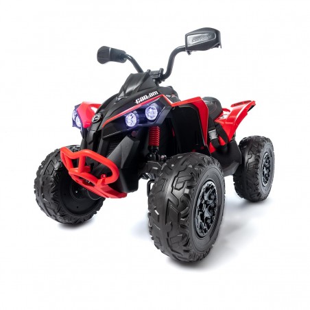 El quad a batería para niños Can Am Renegade 24v es un quad preparadísimo para que los niños más atrevidos puedan disfrutar de su conducción en los terrenos más salvajes. Con esta moto eléctrica estilo quad, los futuros campeones podrán vivir la experiencia de pilotar un potente quad eléctrico de 4 motores, durante más tiempo gracias a su batería de alto rendimiento de 24V y 7 ah. El quad eléctrico Can Am Renegade de 24v está equipado de todos los mejores extras para parecerse lo más posible a un quad de carreras, como unas grandes ruedas de goma Antipinchazos, un asiento de piel acolchado, perfectas suspensiones de muelles etc.