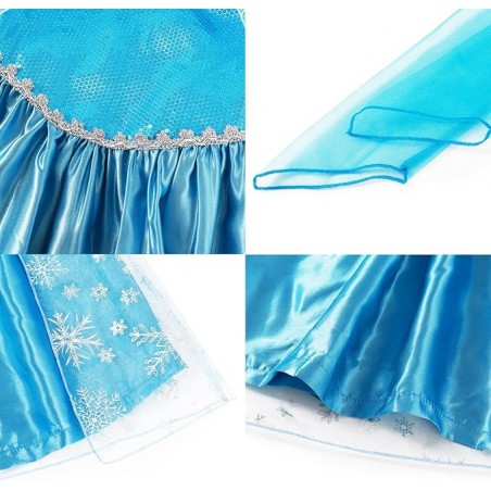 El inconfundible vestido azul y plateado de Elsa, la Reina del Hielo, es un símbolo de valentía y magia que todas las niñas reconocen al instante. Con este disfraz infantil de princesa Elsa Nieve, las pequeñas podrán vivir su propia historia encantada, cantando, bailando y recreando sus escenas favoritas. Este set completo incluye vestido, varita mágica, corona, guantes y bisutería, convirtiéndolo en el atuendo perfecto para Carnaval, Halloween, fiestas de disfraces o cualquier ocasión especial. ¡Un auténtico sueño para todas las fans de la princesa más mágica de Disney!