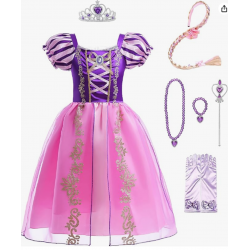 Haz que tu pequeña viva su propio cuento de hadas con este precioso disfraz de princesa Rapunzel. Inspirado en la icónica princesa de cabello dorado, este conjunto de vestido con accesorios hará que cada niña se sienta como la protagonista de su historia mágica. Jugar a disfrazarse no solo es divertido, sino que también fomenta la imaginación, la creatividad y la socialización, permitiéndoles recrear sus escenas favoritas mientras bailan y cantan. Ideal para Carnaval, Halloween, cumpleaños o juegos en casa, este disfraz es una joya para cualquier pequeña soñadora.