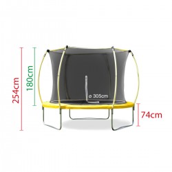 Este trampolín infantil tiene unas dimensiones muy grandes, con tamaño de la zona de salto de 305 centímetros de diámetro, en el que sus hijos podrán disfrutar con total seguridad.