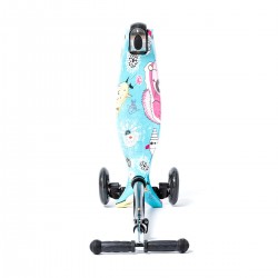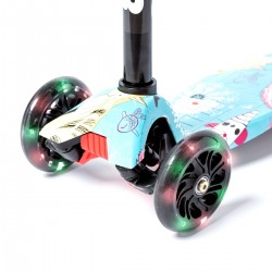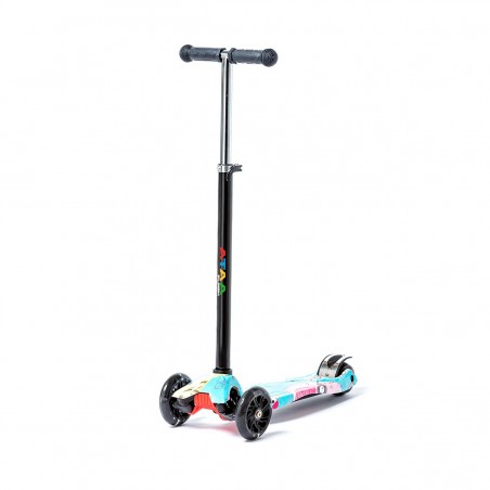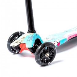 Este patinete es muy especial dado que es ajustable en altura, lleva estampados muy coloridos y una llamativas ruedas con luces.