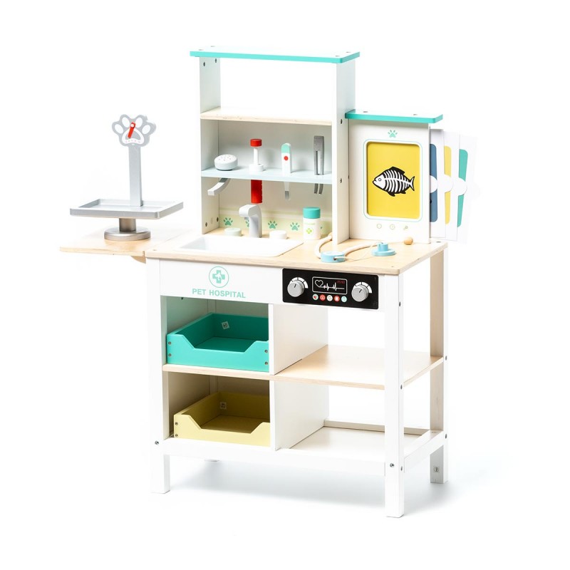El centro veterinario Konner es un excelente juguete para que los niños comprendan mejor el cuidado de los animales. Este centro veterinario de juguete en madera está pensado para niños a partir de los 3 años y, es el regalo perfecto una ocasión especial. Dispone de múltiples accesorios como: jeringuilla, estetoscopio, termómetro y ¡hasta una pantalla de radiografías intercambiable!
