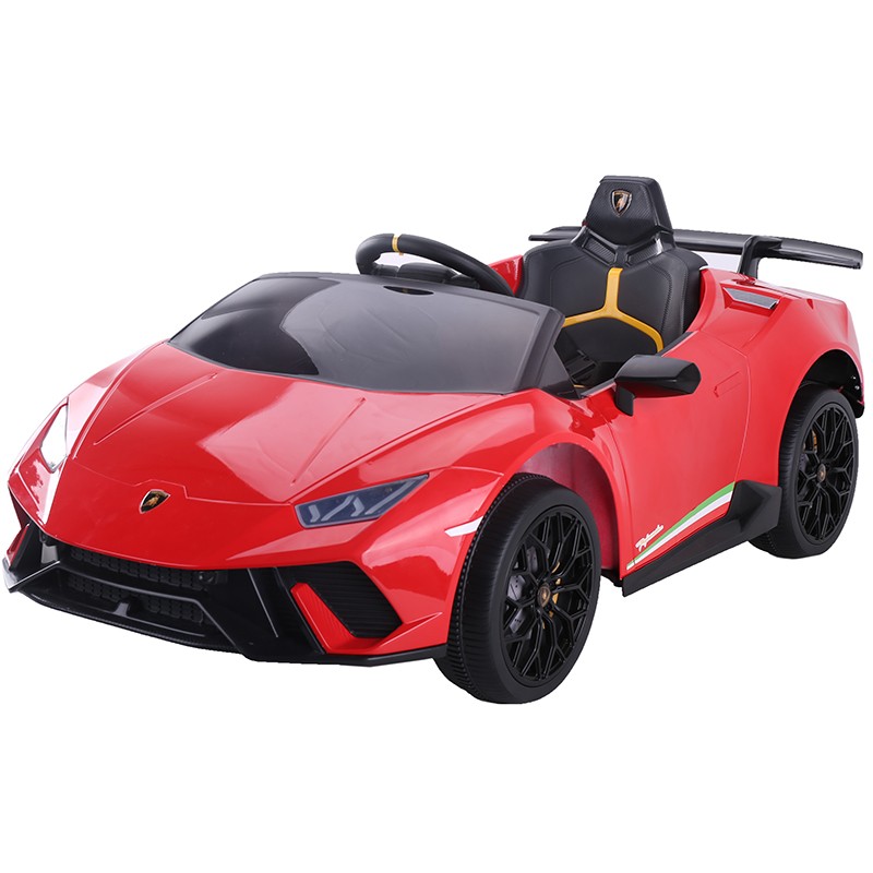 O Lammborghini Huracan tem um assento de couro, rodas de borracha macia EVA, licença Lamborghini, controle remoto e muito mais.