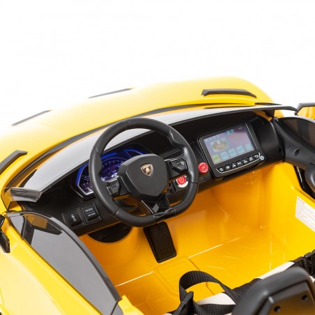 O Lamborghini 24v incorpora a função DRIFT com a qual as crianças se divertirão praticando derrapagens e giros. Além disso, com o controle remoto, os pais podem controlar a direção dos pequenos e participar da diversão. A tela MP4 integrada proporcionará entretenimento extra aos pequenos. Não espere mais para ver seus filhos se divertirem com este impressionante carro elétrico Lamborghini 24v para crianças!