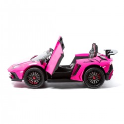 O impressionante Lamborghini Aventador SV apresenta design e detalhes realistas. Este carro elétrico XXL para crianças grandes inclui luzes de LED dianteiras e traseiras que oferecem uma iluminação perfeita, enquanto a bateria de 24v fornece velocidade e duração de jogo surpreendentes.