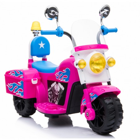 A moto possui ótima estabilidade, bateria de 6 volts, marcha à frente e ré, luzes e sirenes.