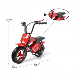 A mini moto elétrica perfeita para crianças a partir dos 6 anos: velocidade, segurança e estilo num único veículo. Equipada com uma potente bateria de 36V 8Ah e um motor de 250W sem corrente, esta mini moto infantil atinge até 25 km/h e foi projetada para proporcionar uma condução segura, estável e divertida. Com uma estrutura robusta, um design desportivo e diversos sistemas de segurança, esta mini moto elétrica é o presente ideal para pequenos aventureiros.