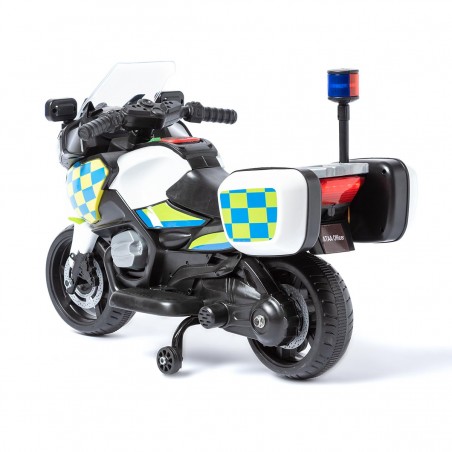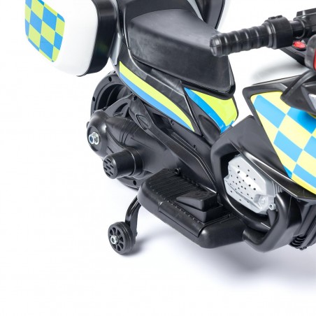 Além disso, com suas duas rodas de apoio, meninos e meninas poderão patrulhar com total segurança ao volante de sua motocicleta policial infantil ATAA Officer 6v super por toda a casa .