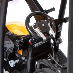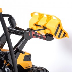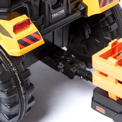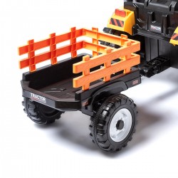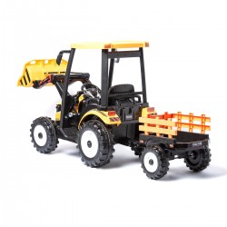 Este enorme trator de 24v possui motores potentes que permitem até 3 velocidades. O trator tem uma lâmina de escavadeira na frente e uma plataforma de reboque atrás. Possui botão de partida e controle remoto para que os adultos possam direcionar a direção dos pequenos. O design deste trator Farmer para crianças é uma reminiscência de tratores reais, com os quais as crianças se sentirão como verdadeiros agricultores.