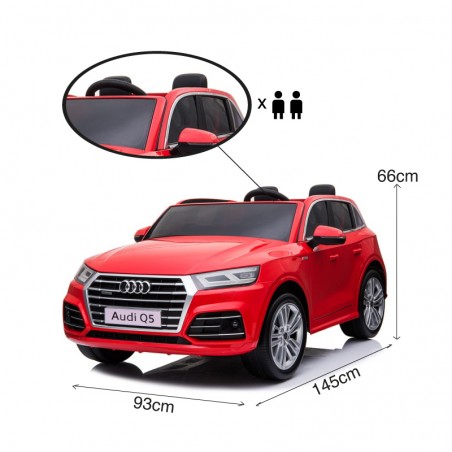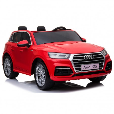 O Audi Q5 é um carro muito grande e poderoso que está equipado com extras de luxo, como bancos em pele, acolchoado, rodas de borracha, painel luminoso frontal, alça de arraste, potente bateria de 24v e potentes motores de 6200 watts cada um, entre outros.