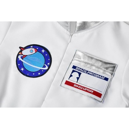 Esta fantasia de astronauta para meninos e meninas , disponível nos tamanhos de 2 a 12 anos , apresenta um macacão longo decorado com faixas prateadas e um logotipo espacial , além de um zíper frontal para um ajuste fácil e confortável . Inclui luvas prateadas e uma balaclava leve que simula um capacete , garantindo liberdade de movimentos e conforto para horas de diversão. Com um design fiel aos trajes espaciais reais, esta fantasia fará com que qualquer criança se sinta um verdadeiro explorador do cosmos. O presente perfeito para futuros astronautas!