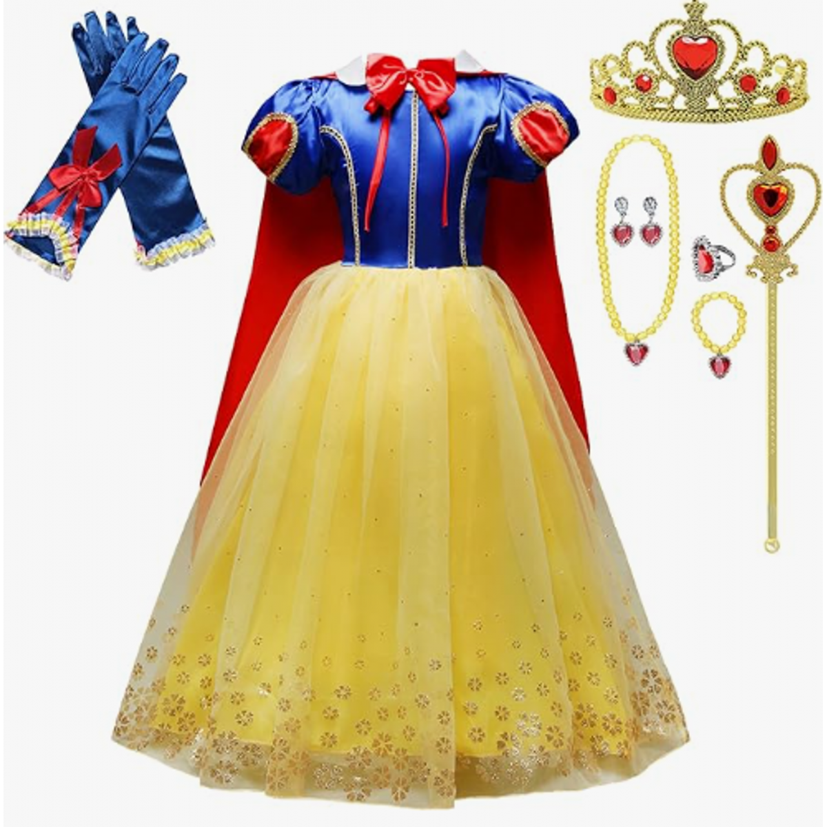 Disponível nos tamanhos de 3 a 9 anos , esta fantasia de princesa Branca de Neve é feita com materiais de alta qualidade que garantem conforto e durabilidade. Além do vestido e da capa, o conjunto inclui uma coroa, luvas e um conjunto de joias , deixando a pequena como uma verdadeira princesa. Apresentando um design fiel ao personagem e acessórios combinando, esta fantasia é o presente perfeito para meninas que sonham com contos de fadas . Um conjunto inesquecível para aventuras mágicas! ✨