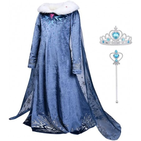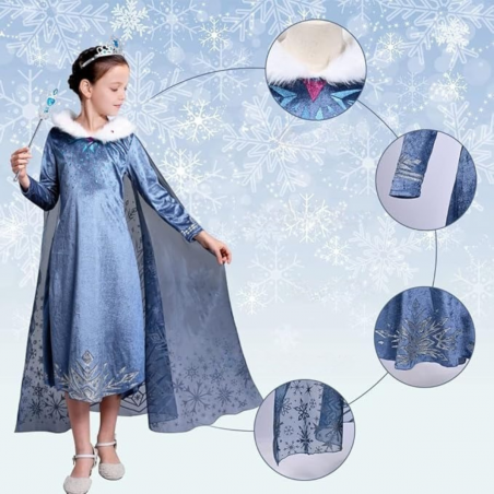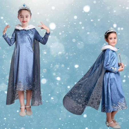 Mergulhe em um mundo de fantasia de inverno com esta espetacular fantasia de princesa para meninas . Inspirado nas grandes rainhas dos contos de fadas, este vestido de veludo com capa e gola de pelúcia fará qualquer menina se sentir a estrela de sua própria história mágica. Com detalhes brilhantes e acessórios como uma tiara real e uma varinha mágica , esta fantasia oferece um toque elegante e charmoso. Ideal para Carnaval, Halloween, festas à fantasia ou jogos de RPG , é a escolha perfeita para realizar os sonhos das princesinhas.