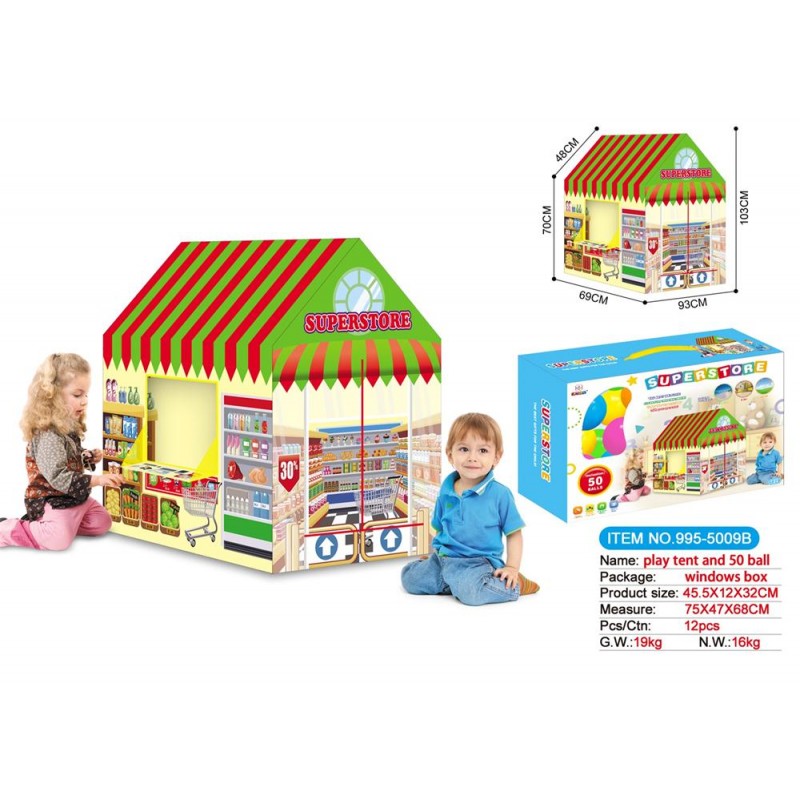 A barraca de campanha para bebés e crianças "Supermercado", dispõe de uma bonita decoração ambientada em um supermercado.