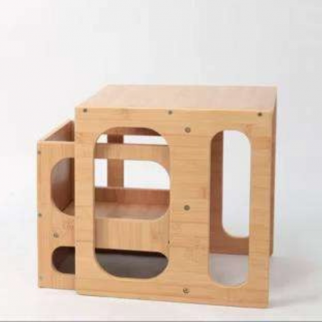 Descubra a mesa Montessoriana Klea com sua cadeira 100% bambu natural , um conjunto pensado para aproveitar ao máximo o espaço e incentivar a autonomia das crianças. Seu design compacto e cúbico permite que a cadeira se encaixe perfeitamente sob a mesa, otimizando qualquer quarto ou sala de jogos. Graças à sua estrutura ergonômica , este móvel facilita o desenvolvimento das habilidades motoras, permitindo que as crianças sentem, levantem e se movimentem de forma independente . Ideal para atividades como desenhar, pintar ou brincar com argila , promovendo a aprendizagem e a criatividade num ambiente adaptado ao seu tamanho.