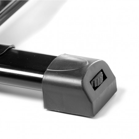 - Tela LCD para monitorar o exercício (tempo decorrido, velocidade, distância percorrida e calorias queimadas).